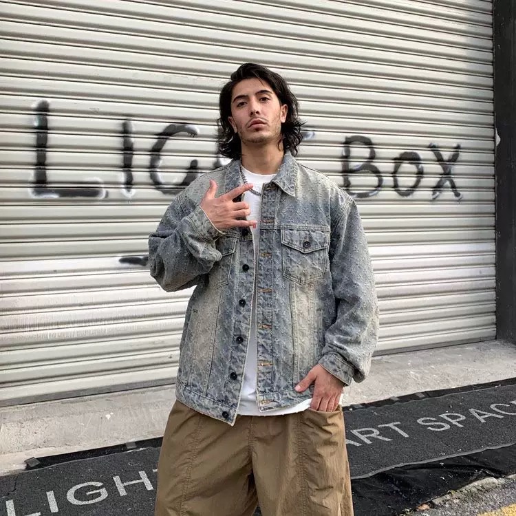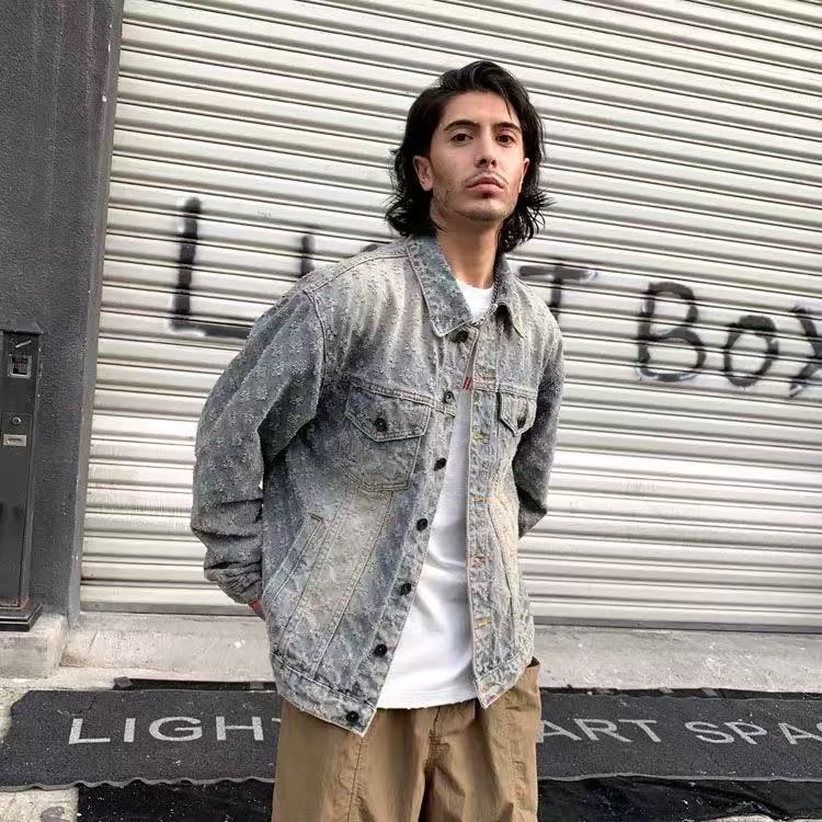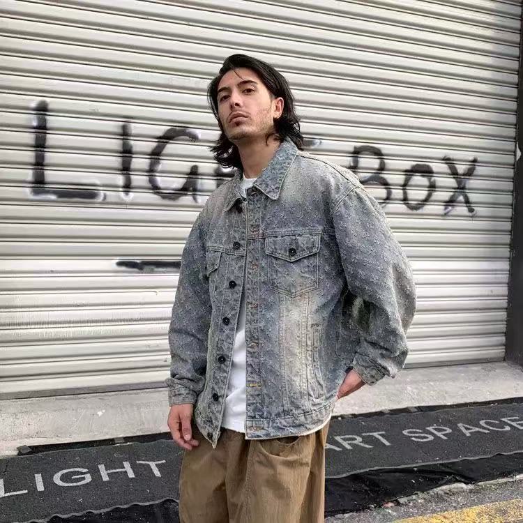 美式潮牌提花牛仔外套男秋冬新款小衆設計復古夾克寬松休閒
