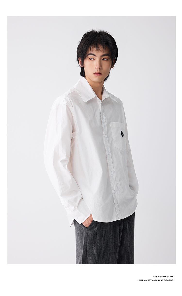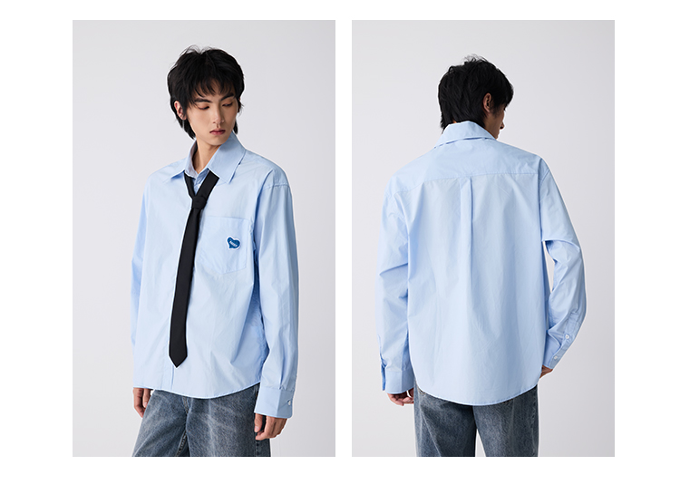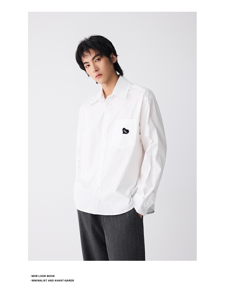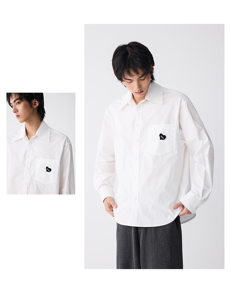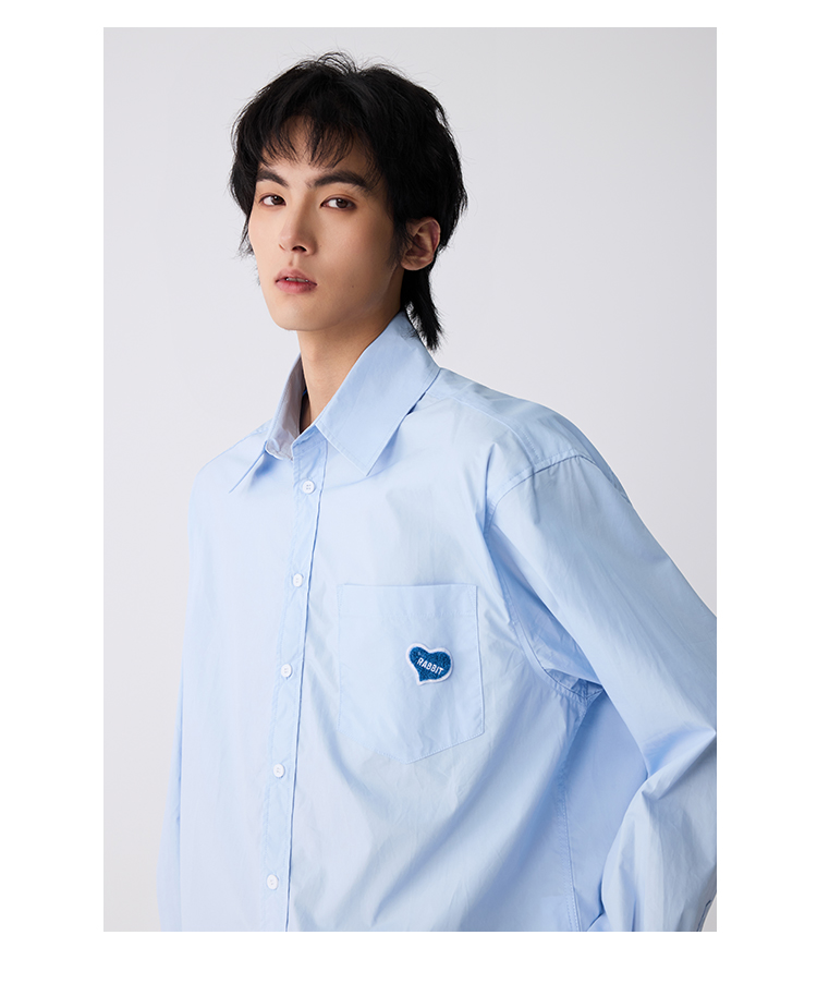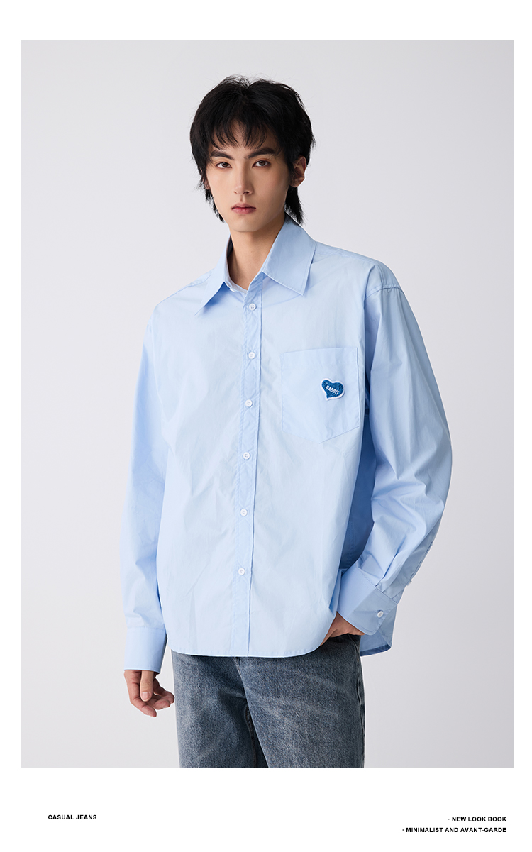 青春學園風少年感口袋小愛心口袋刺繡襯衫百搭潮流簡約長袖衫