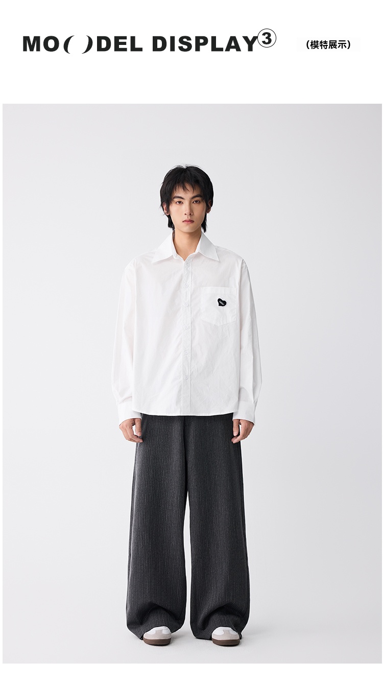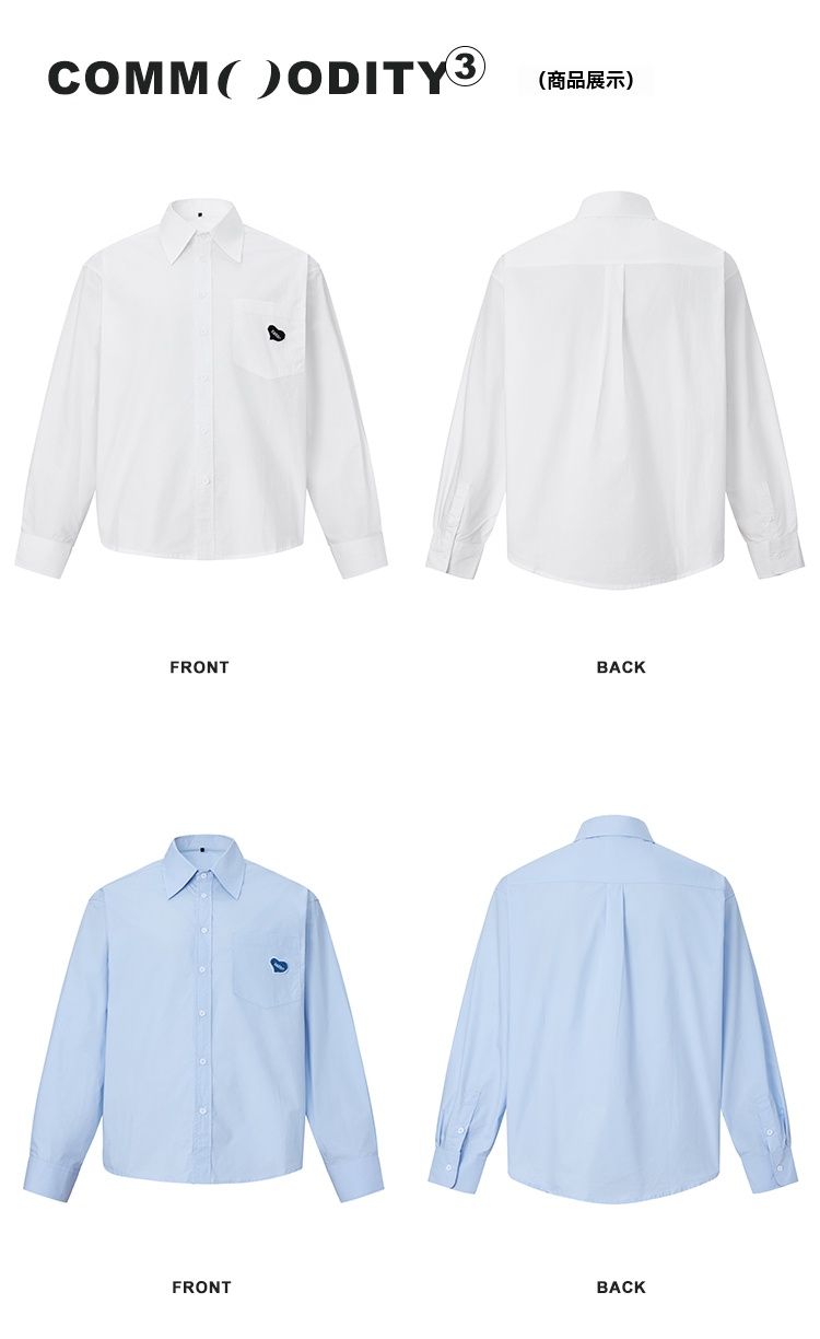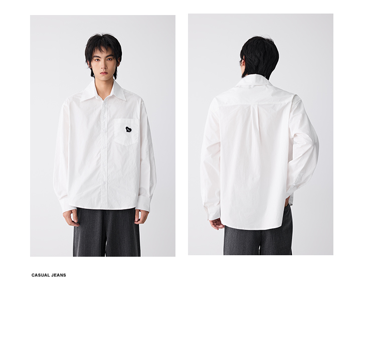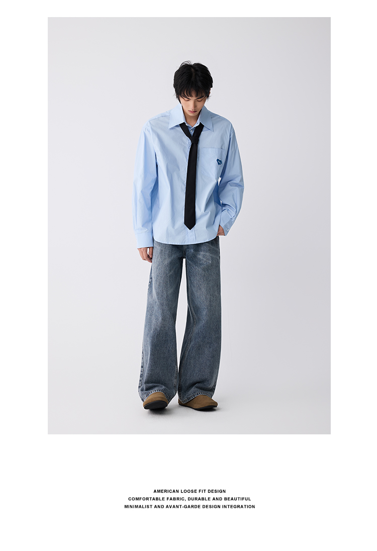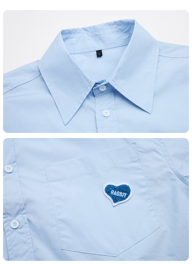 青春學園風少年感口袋小愛心口袋刺繡襯衫百搭潮流簡約長袖衫