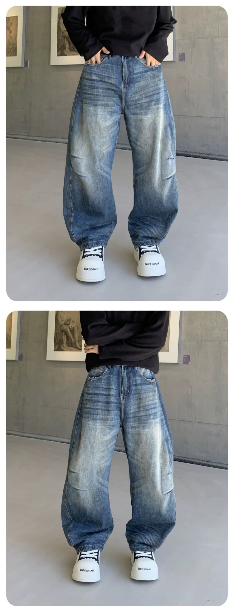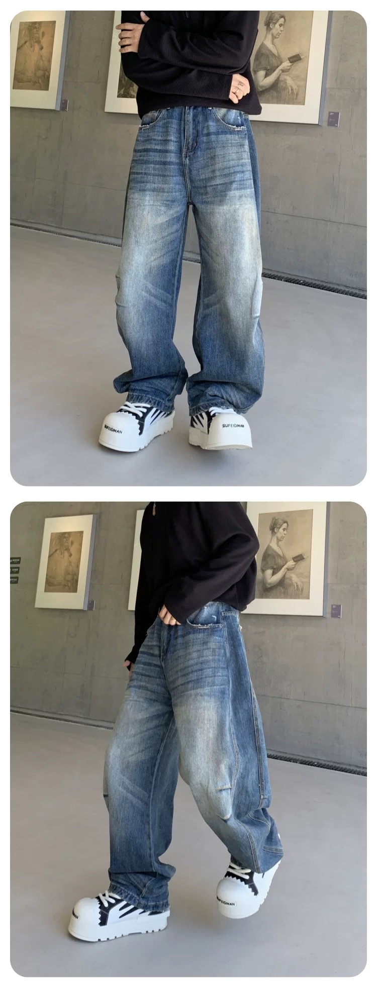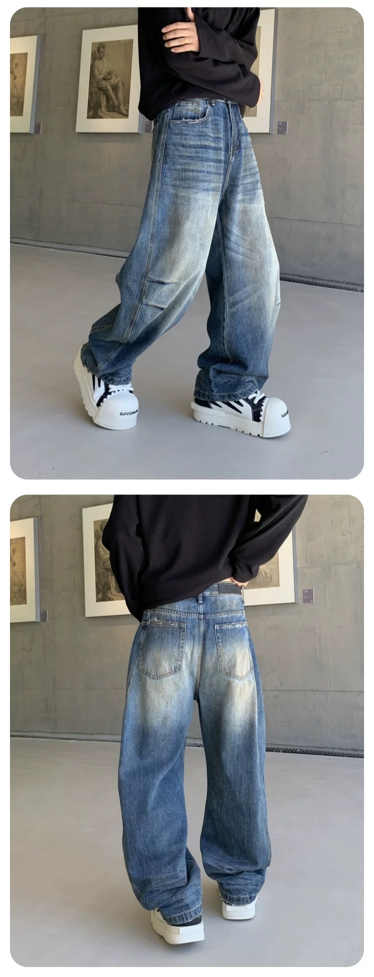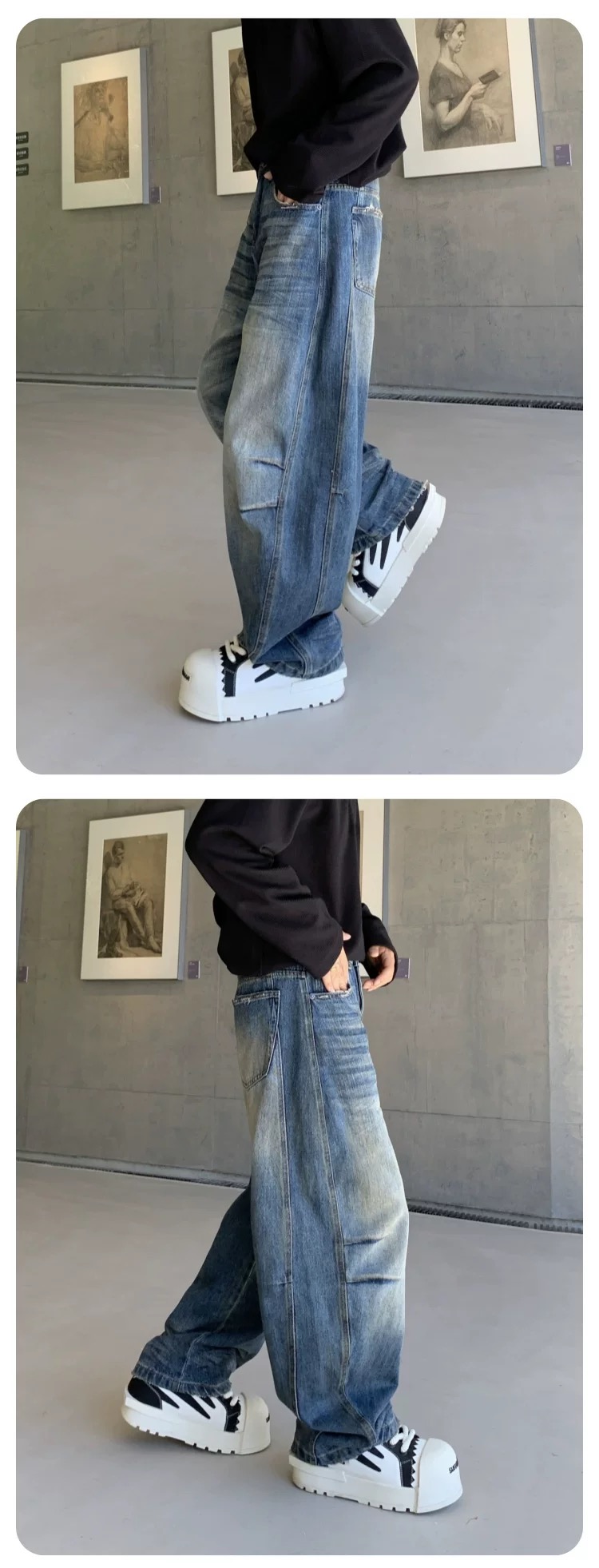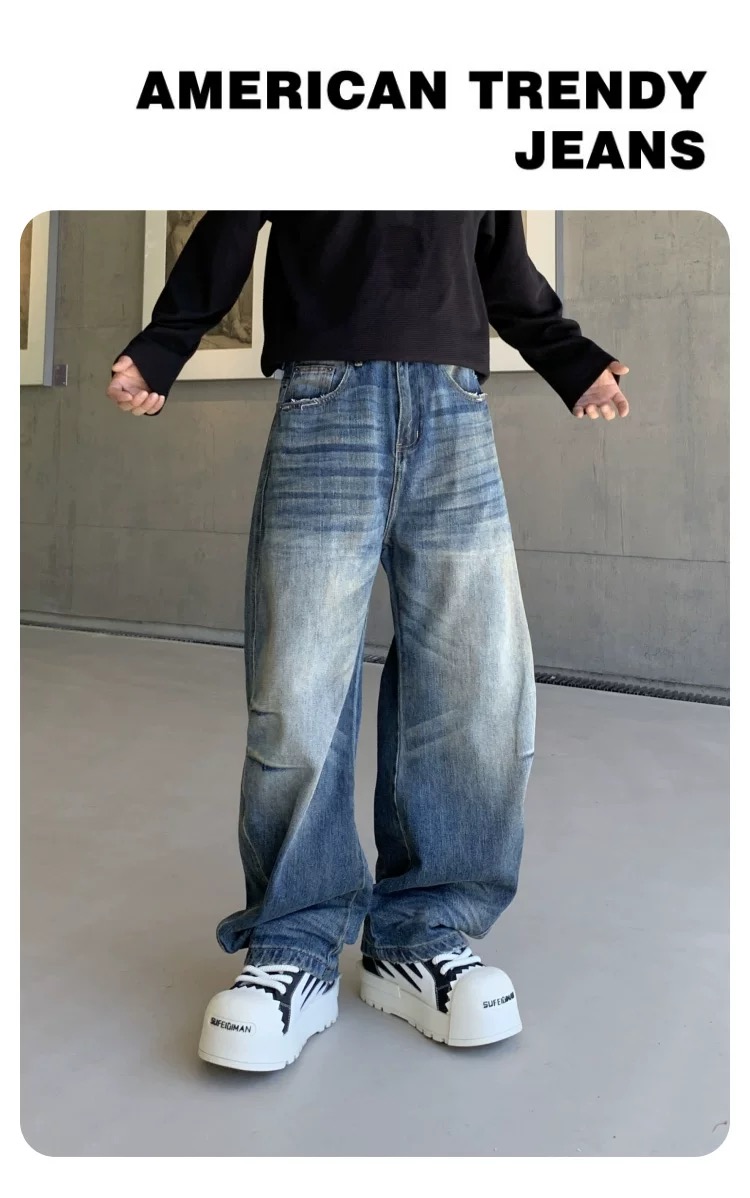 巴黎風格美式復古高街潮牌寬松直筒彎刀牛仔褲男女款百搭休閒褲