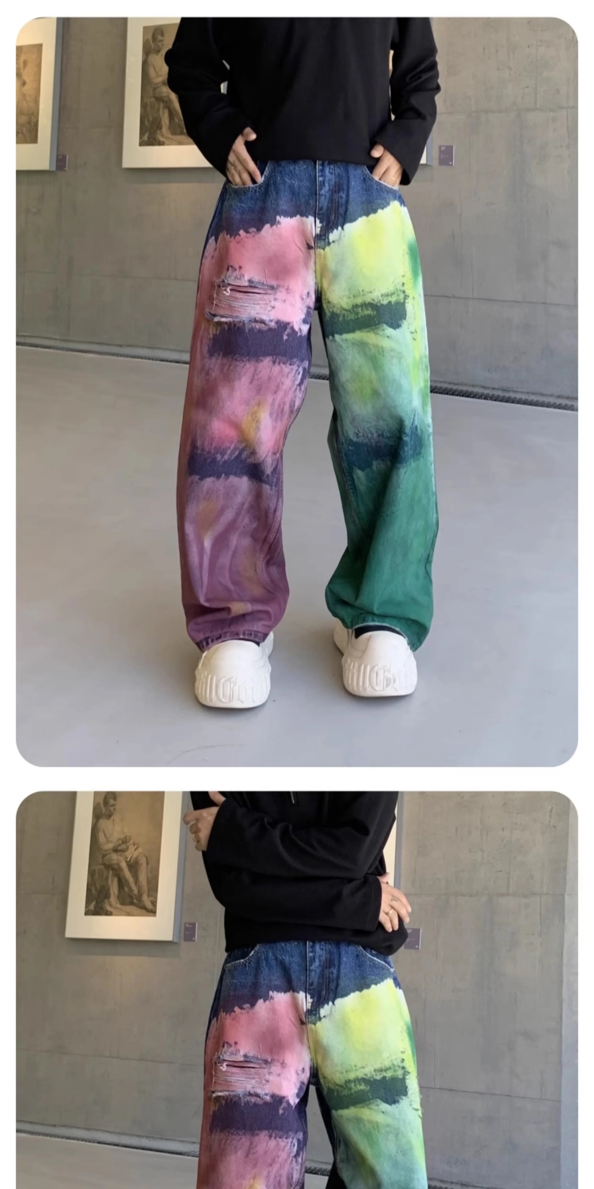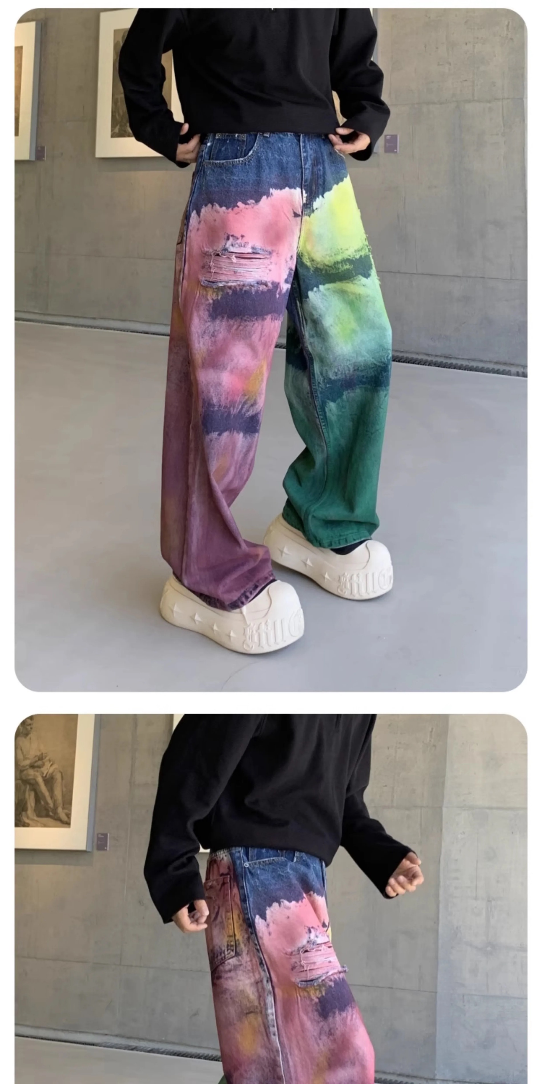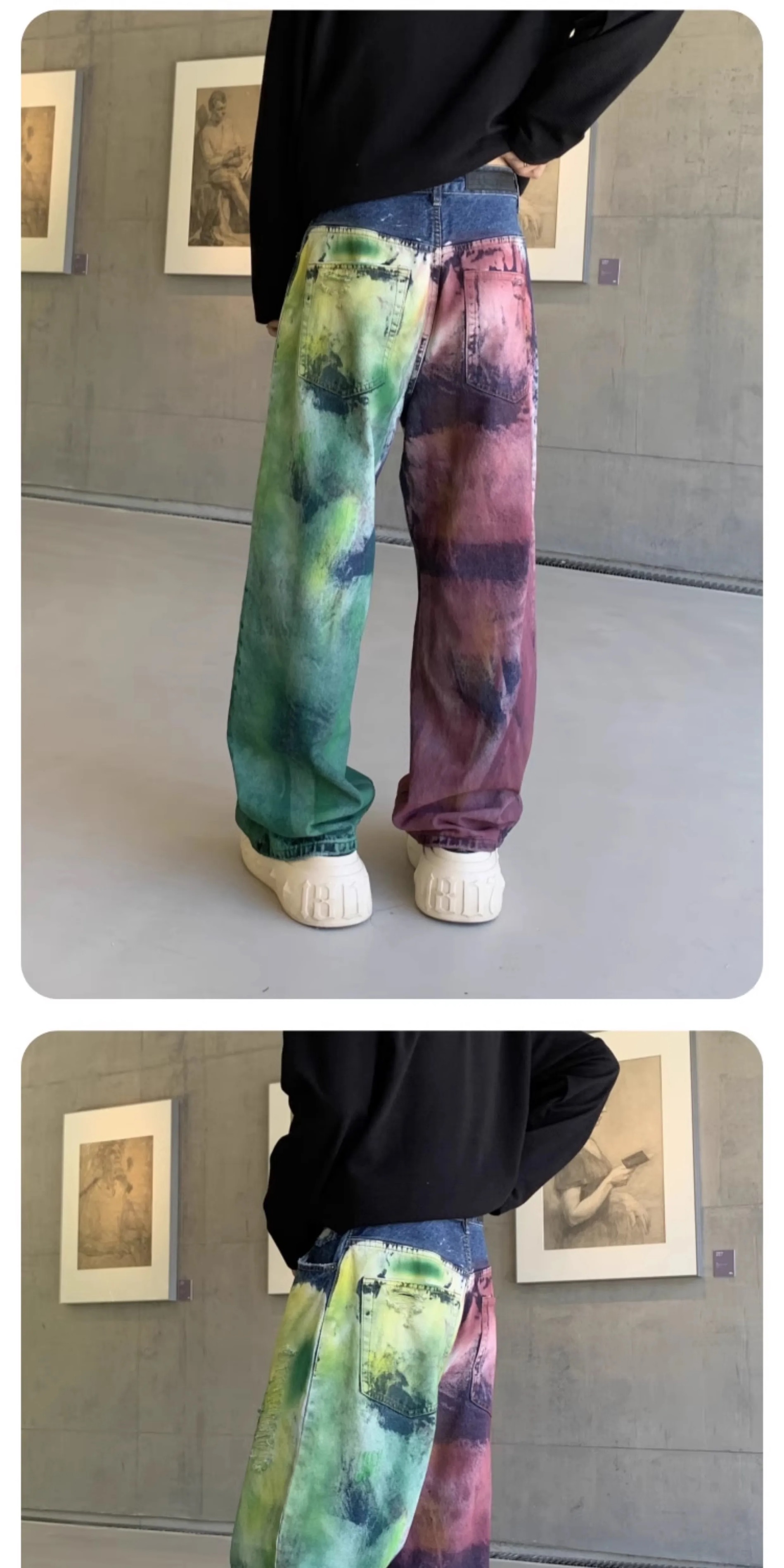 美式潮牌彩色潑墨牛仔褲男秋冬新款嘻哈風寬松扎染直筒褲子